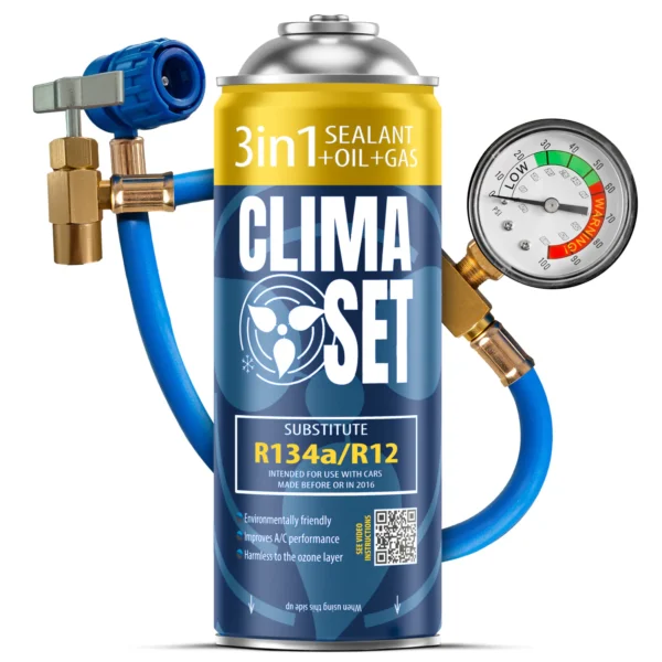 ✔ Wydajność czynnika – puszka ClimaSet zawiera 170g chłodziwa, co odpowiada 340g R1234yf. Lżejsza mieszanka działa efektywniej i mniej obciąża układ klimatyzacji, zapewniając mniejsze zużycie energii i dłuższą żywotność podzespołów.