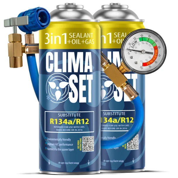 Wydajność czynnika – puszka ClimaSet zawiera 235g chłodziwa, co odpowiada 470g R1234yf. Lżejsza mieszanka działa efektywniej i mniej obciąża układ klimatyzacji, zapewniając mniejsze zużycie energii i dłuższą żywotność podzespołów.