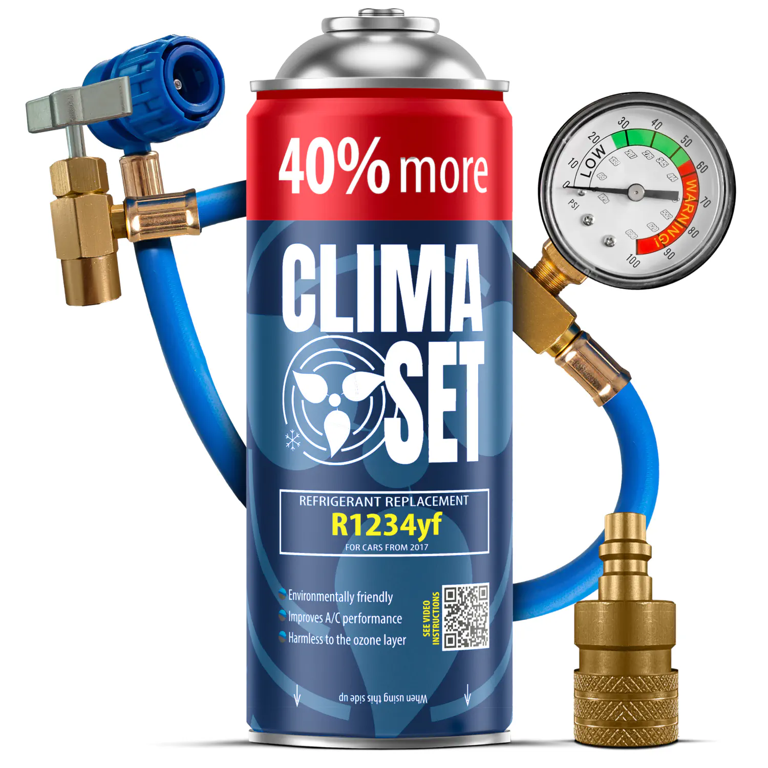 ✔ Wydajność czynnika – puszka ClimaSet zawiera 235g chłodziwa, co odpowiada 470g R1234yf. Lżejsza mieszanka działa efektywniej i mniej obciąża układ klimatyzacji, zapewniając mniejsze zużycie energii i dłuższą żywotność podzespołów.
