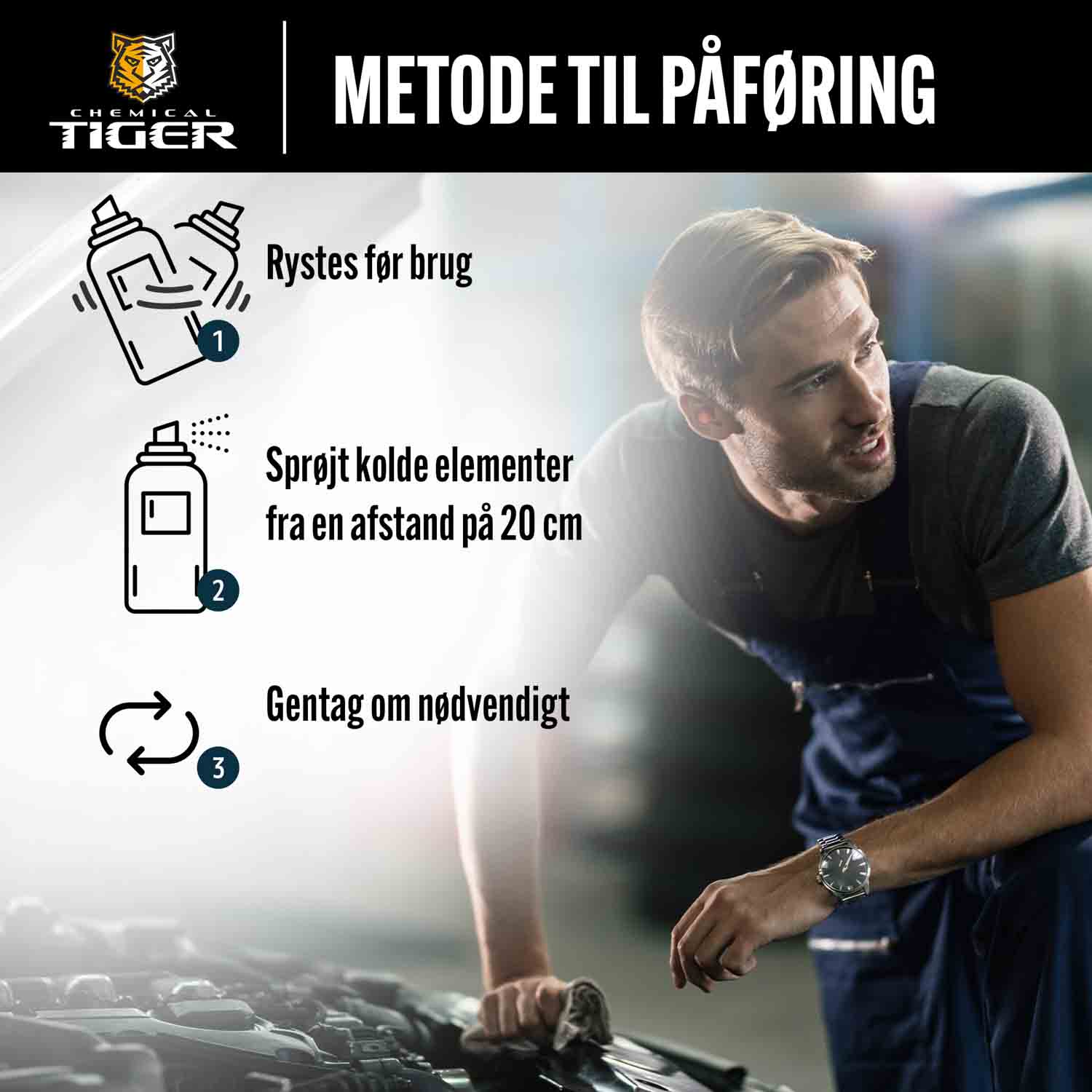 2. Sprøjt kun på kolde komponenter fra en afstand af 20 cm