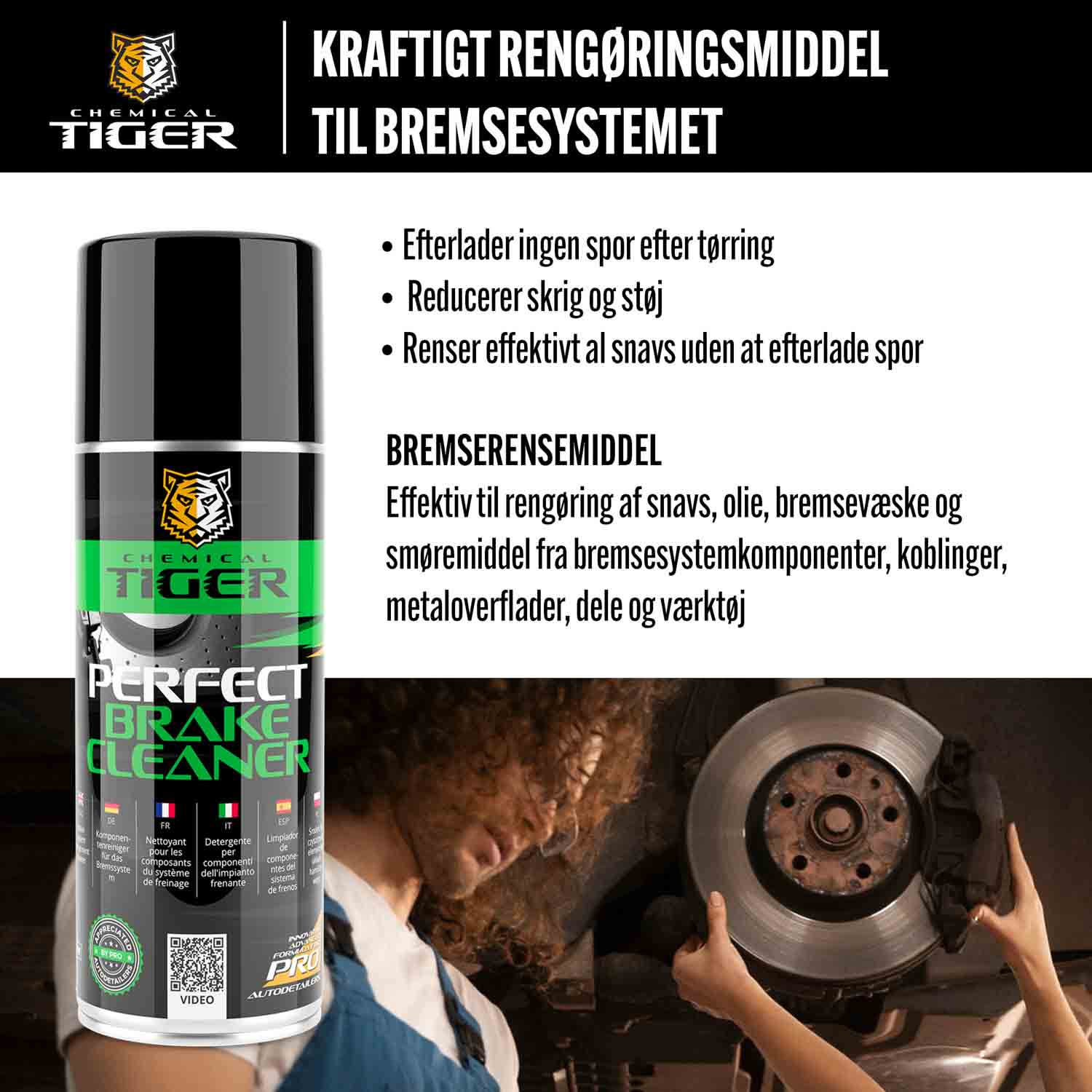 Bremserens er et effektivt rengøringsmiddel til at fjerne snavs, olie, bremsevæske og fedt fra bremsekomponenter, koblinger, metaloverflader, dele og værktøj. Den efterlader ingen rester og hjælper med at reducere knirken og lyde.