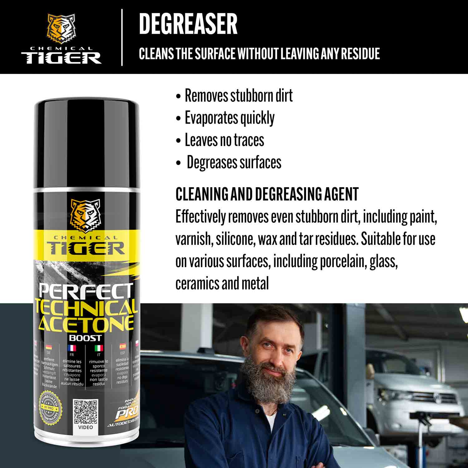 A surface cleaner and degreaser that evaporates quickly and leaves no residue. Effectively removes even stubborn dirt, including paint, varnish, silicone, wax and tar residues. Suitable for use on a variety of surfaces including porcelain, glass, ceramics and metal. Can be used to degrease surfaces before painting and gluing.