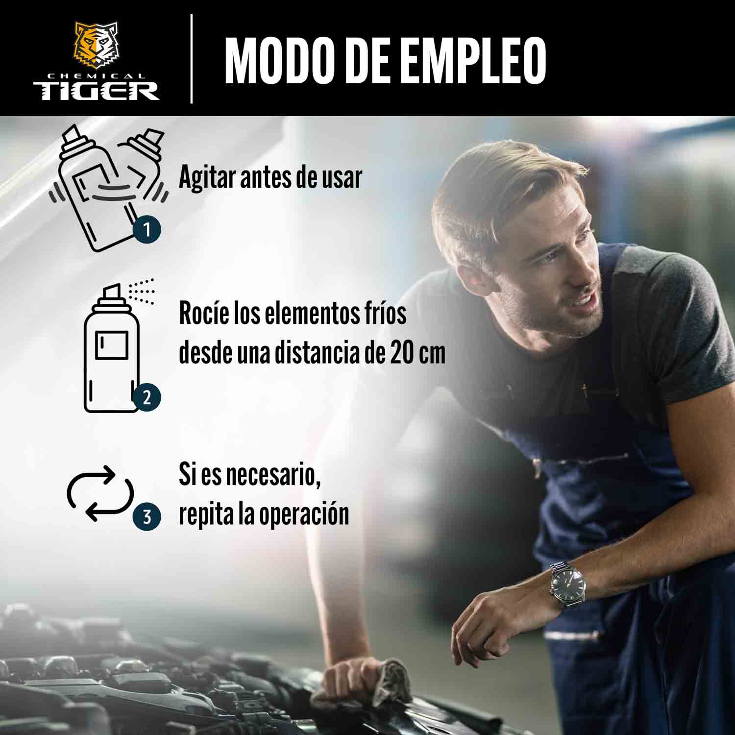 2. Pulverizar sólo sobre componentes fríos a una distancia de 20 cm