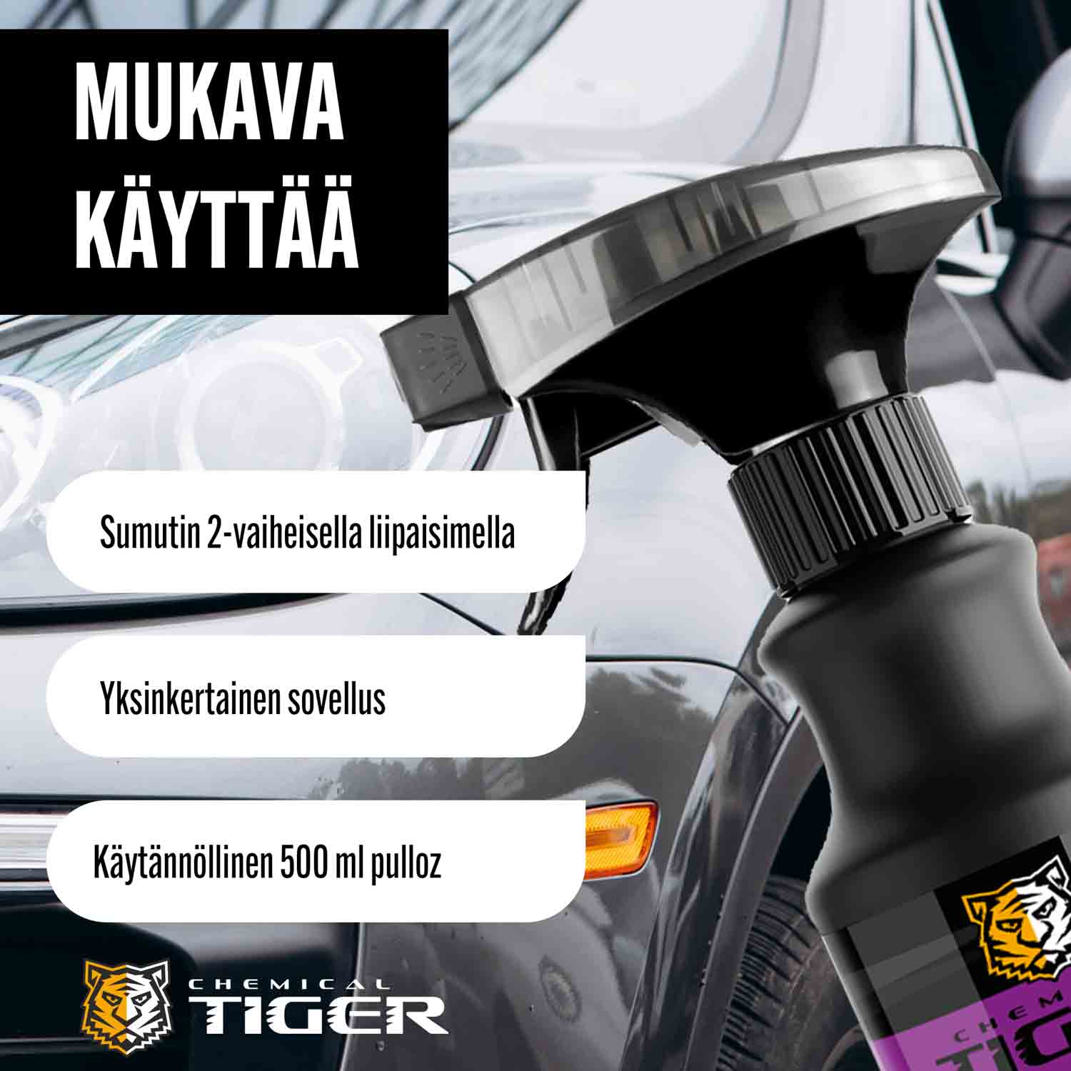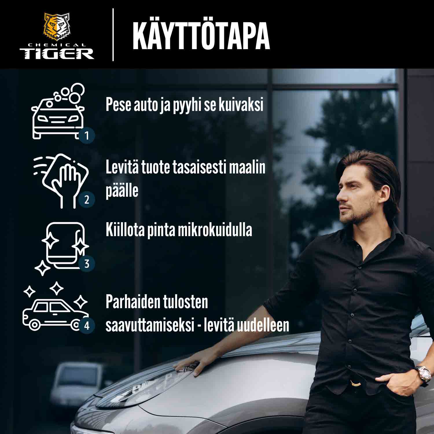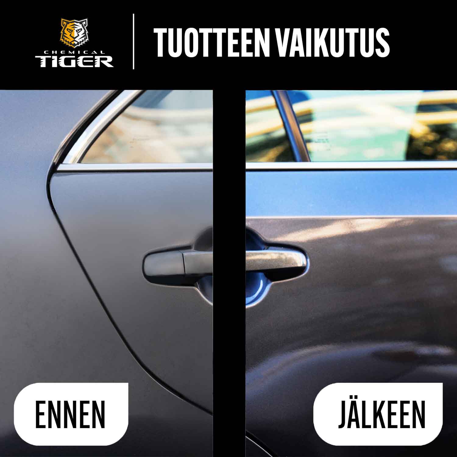 • tekee maalipinnasta liukkaan: Pinnasta tulee sileä ja likaa hylkivä, jolloin auton pitäminen puhtaana on helpompaa.