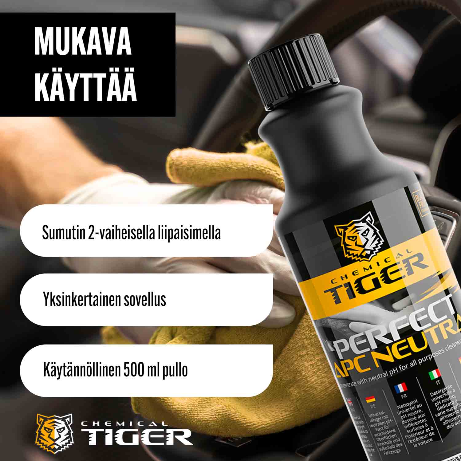 pH-neutraali yleispuhdistusaine auton sisä- ja ulkopinnoille