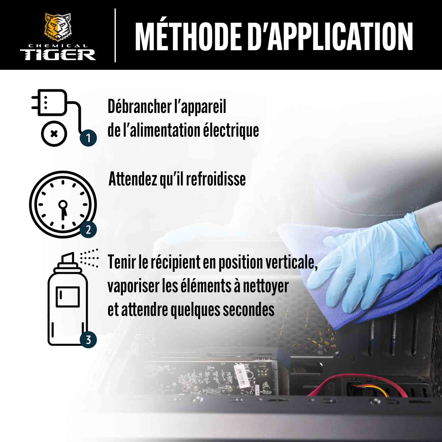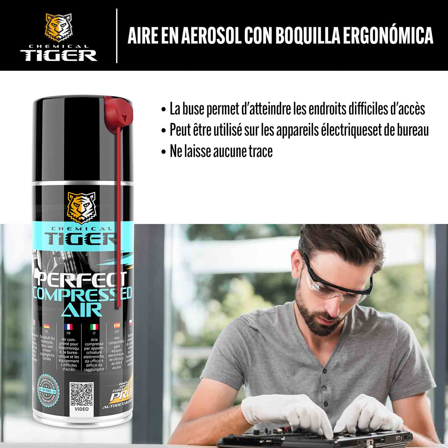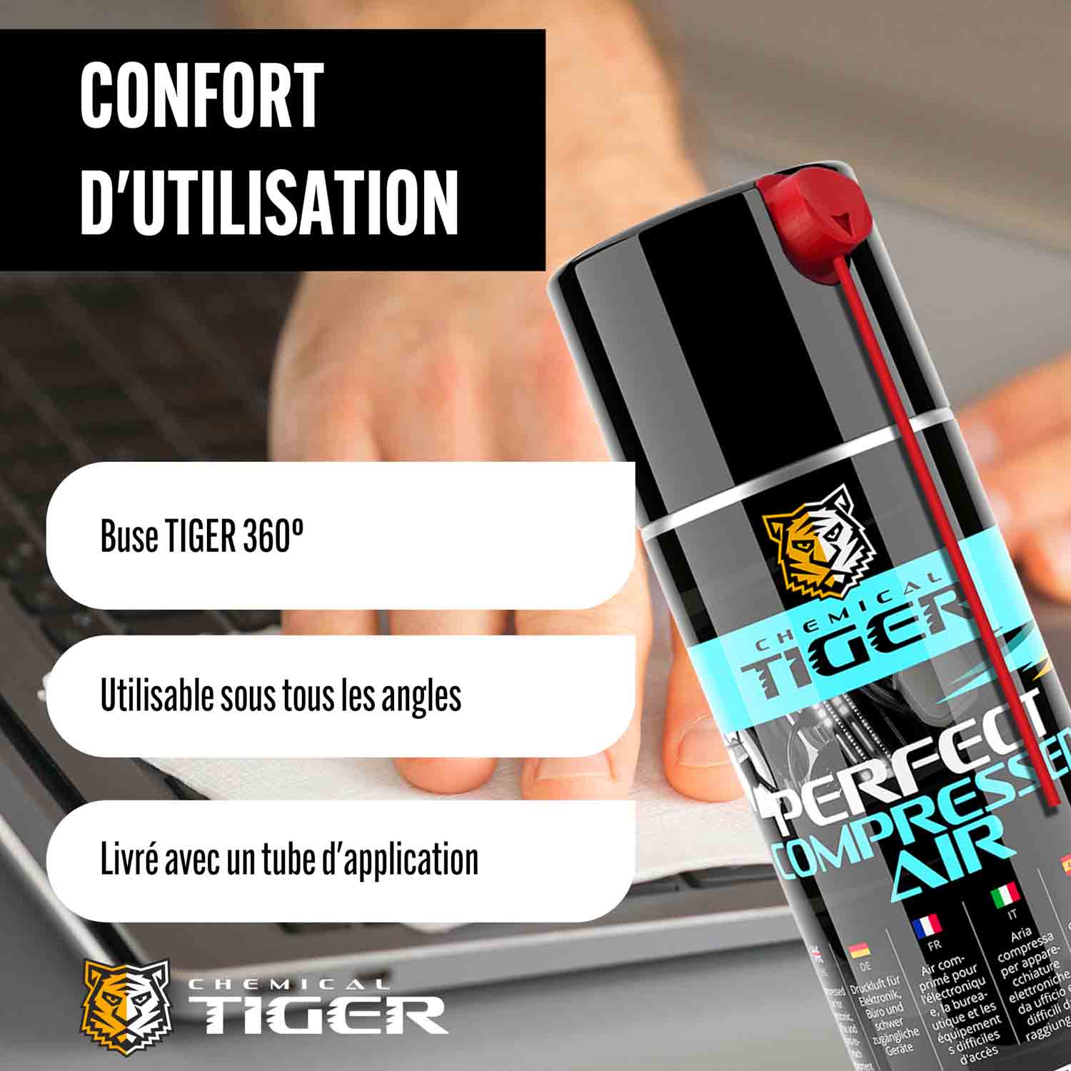 Air comprimé pour le nettoyage des équipements de bureau et autres appareils électriques. Sous haute pression, il élimine la saleté des zones difficiles d’accès sans laisser de résidus.