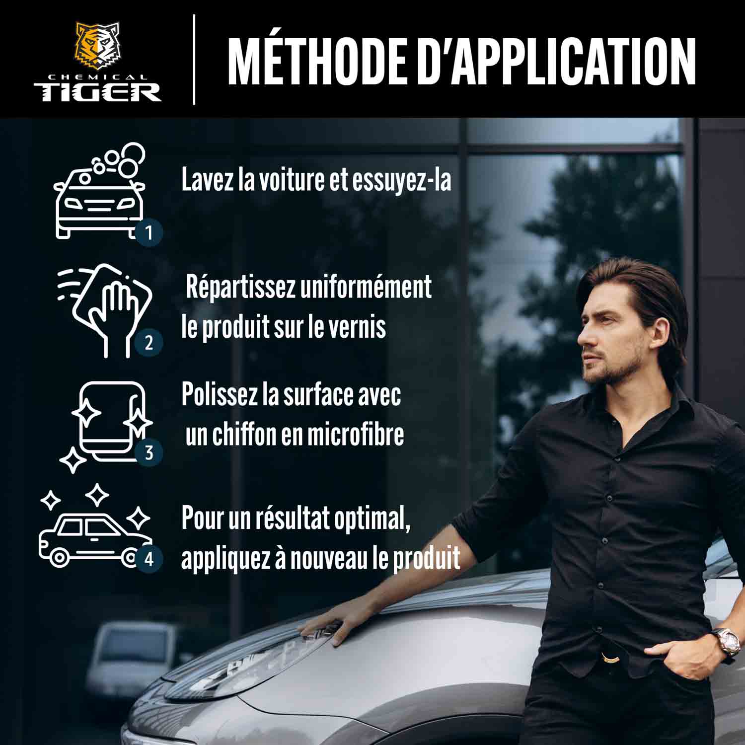 • Rincez abondamment et profitez de l'incroyable effet hydrophobe sans polissage