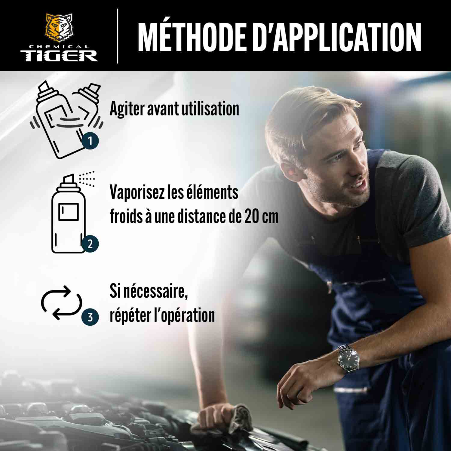 2. Pulvériser uniquement sur les composants froids à une distance de 20 cm.