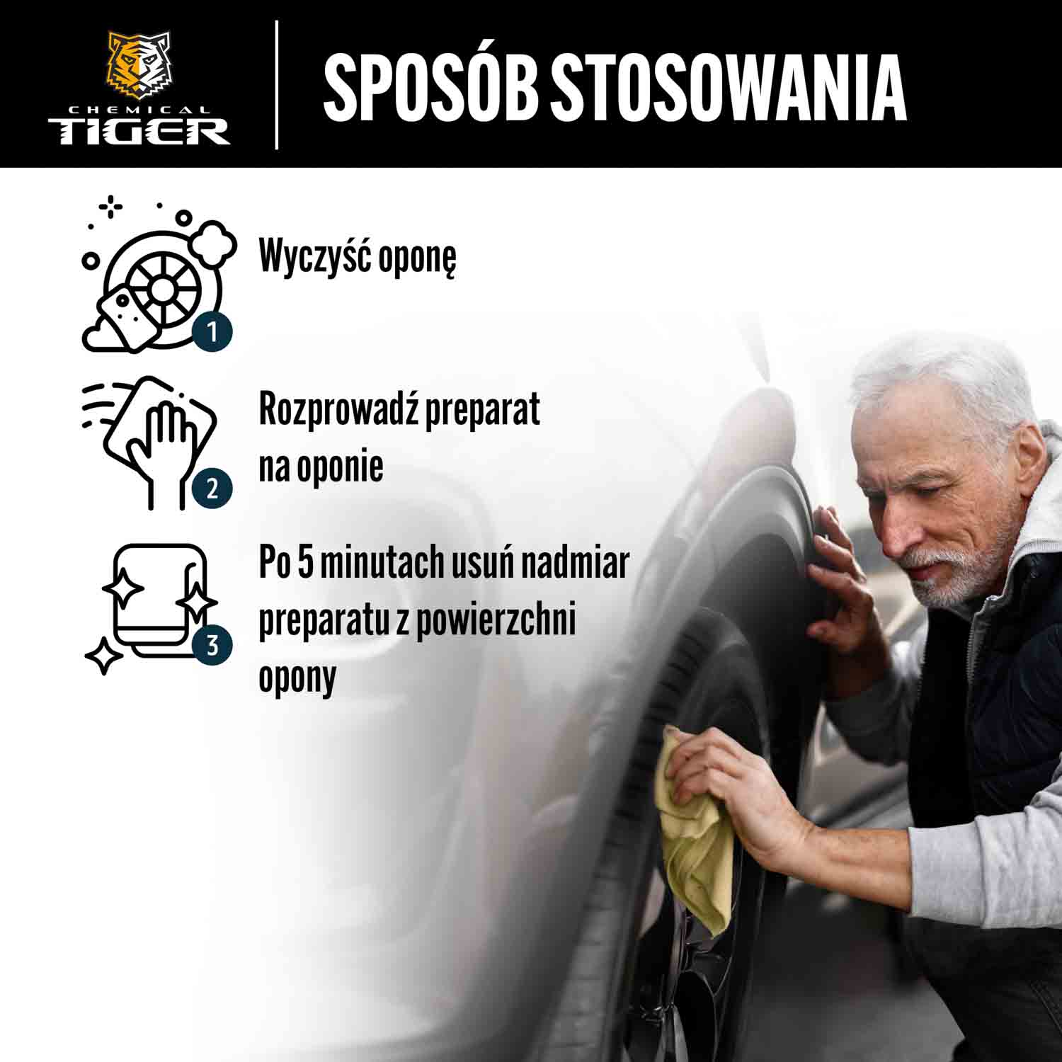 • Redovitom primjenom ovog proizvoda vaše će gume zadržati estetski izgled i funkcionalna svojstva znatno dulje. Odaberite profesionalnu njegu i zaštitu uz Chemical Tiger!