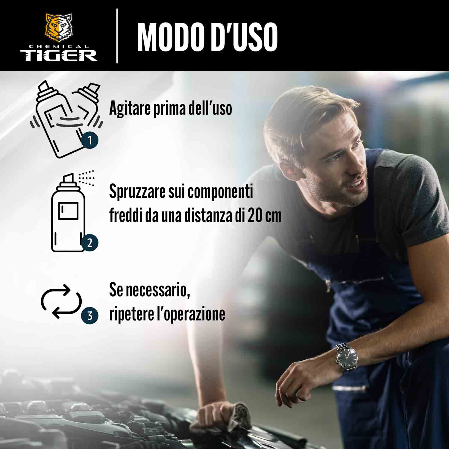 2. Spruzzare solo su componenti freddi da una distanza di 20 cm.
