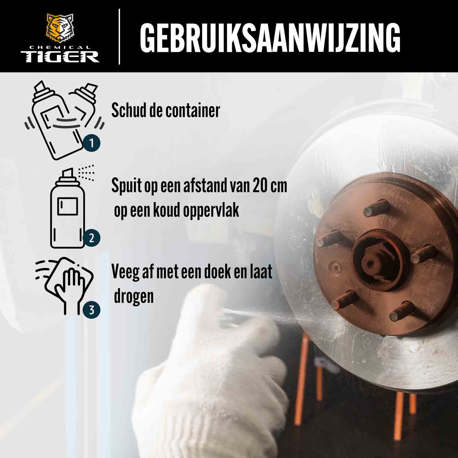Schud de verpakking voor gebruik. Alleen aanbrengen op koude oppervlakken. Verstuif op de te reinigen onderdelen van een afstand van 10-20 cm. Afvegen met een doek en laten drogen.