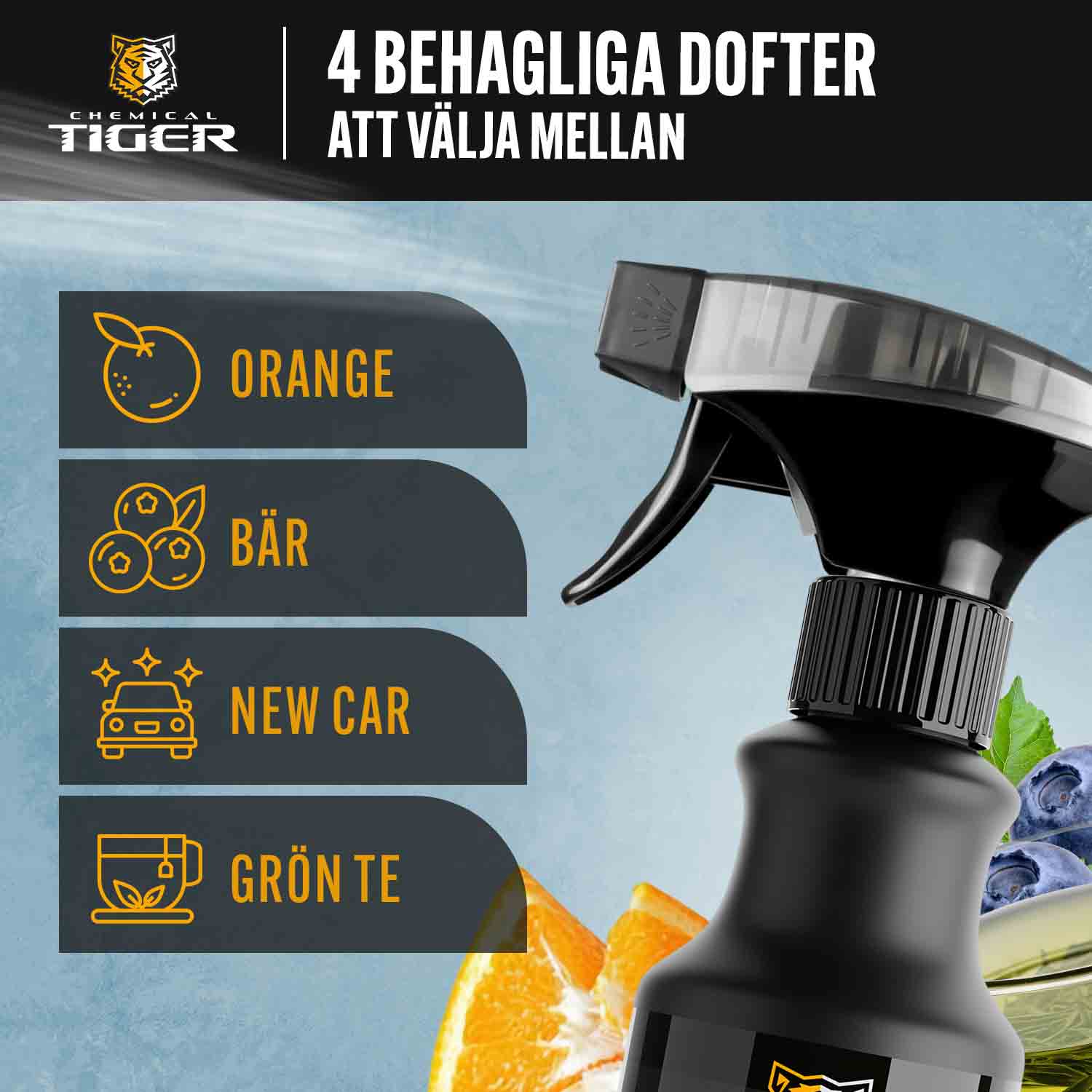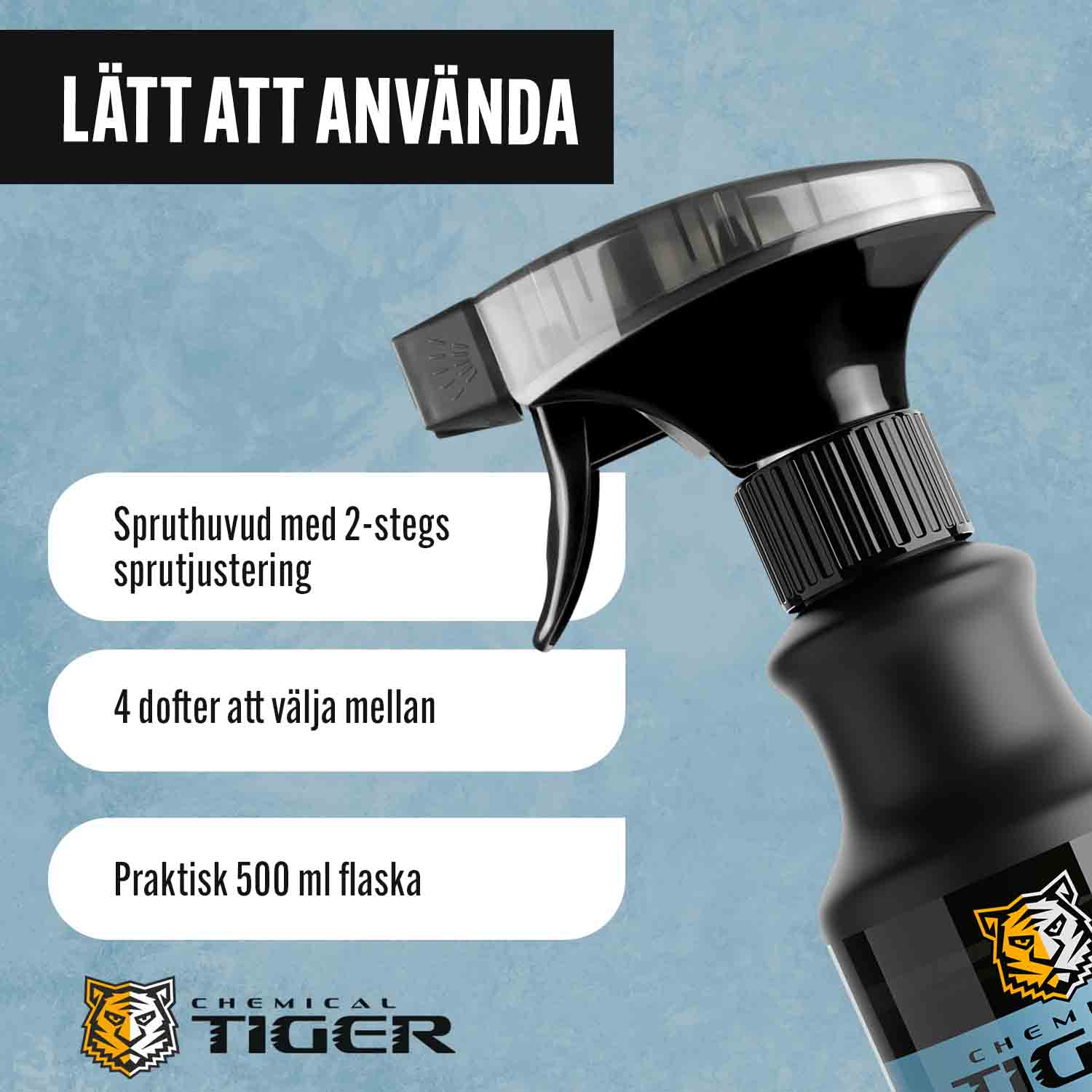 Kemisterna på Chemical Tiger har skapat en egenutvecklad formulering för denna produkt med ett brett användningsområde, baserad på höga koncentrationer av aktiva ingredienser som resulterar i en oöverträffad prestanda för produkten jämfört med andra produkter i detta segment. Det som utmärker Chemical Tiger-sortimentet är dess omedelbara verkan under de mest extrema vinterförhållanden. Preparatet är säkert för förseglingen av billacken. Produkten har en mycket behaglig lukt av nyplockade bär.