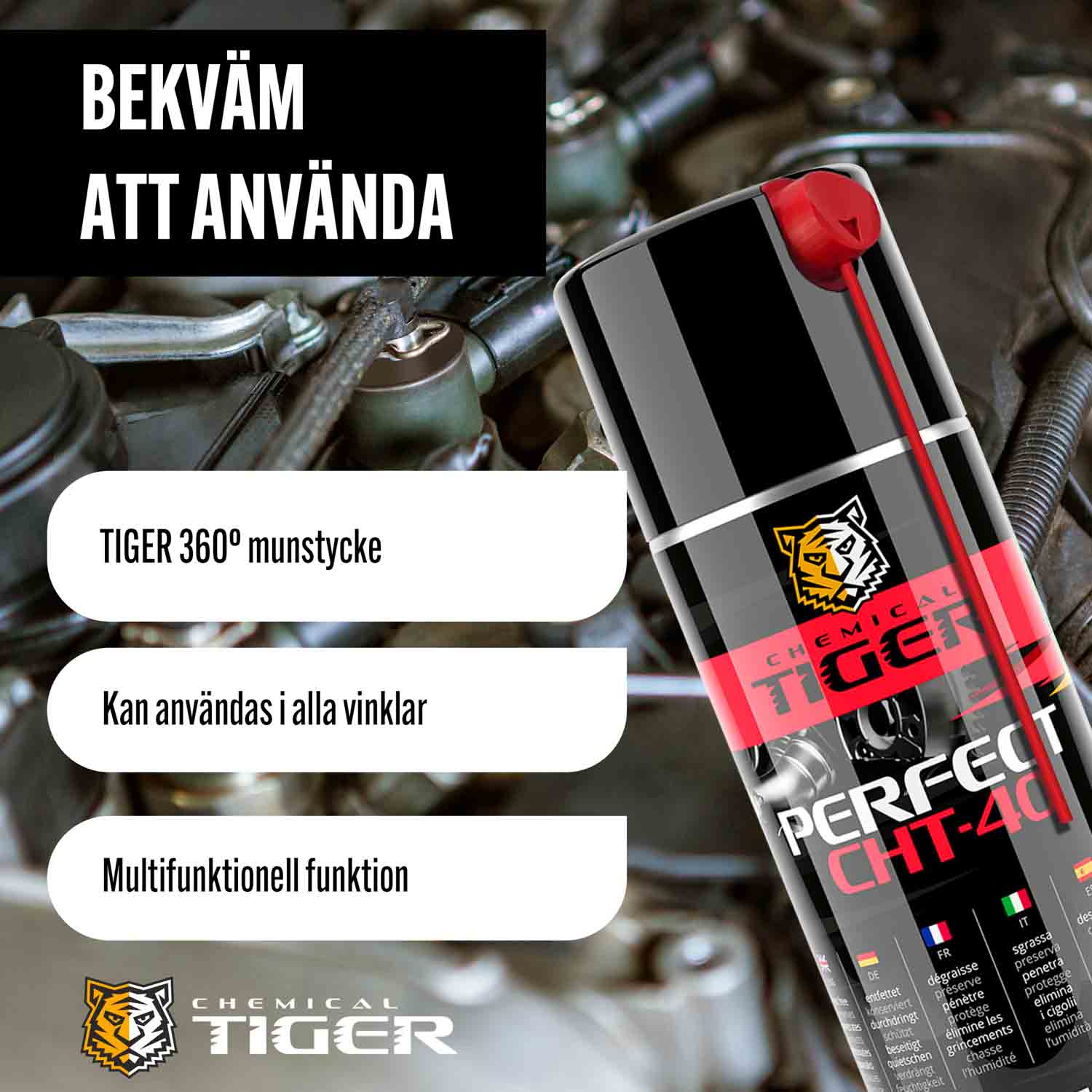 • kostnadseffektiv tack vare TIGER 360° aktivator/huvud, som gör det möjligt att arbeta i alla vinklar och applicera produkten till 100 % ända fram