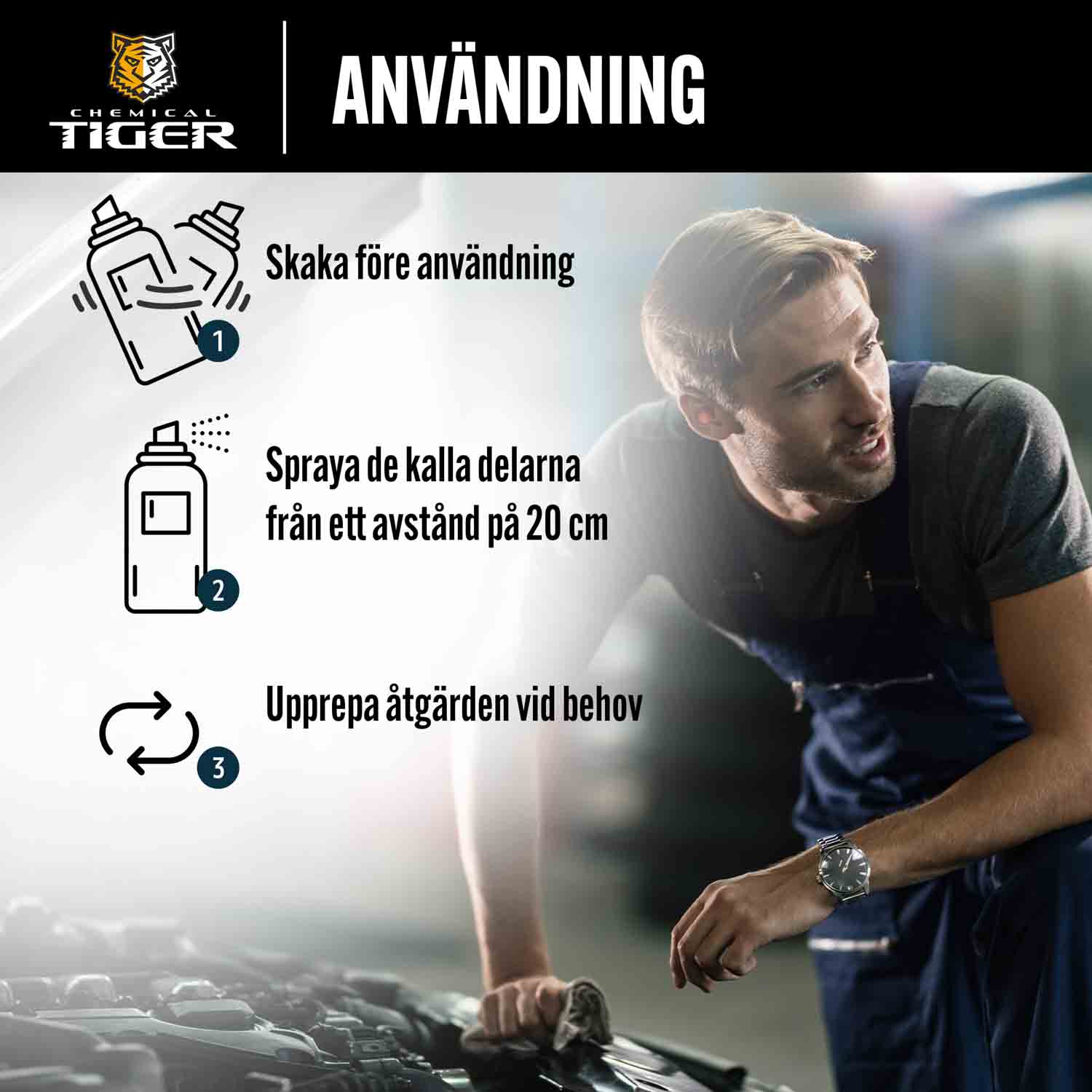 2. Spraya endast på kalla komponenter från ett avstånd av 20 cm